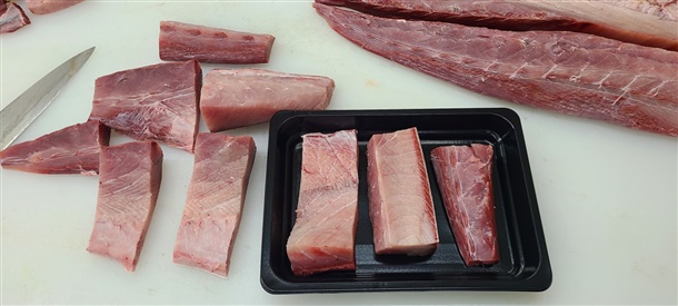 중방어를 손질하지 않고 10kg이상 대방어만을 손질하며,
